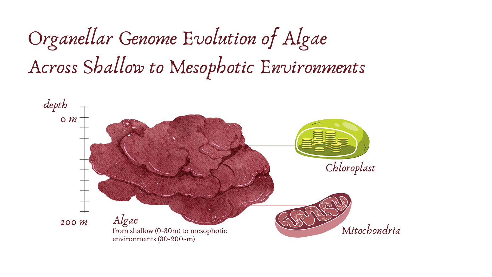 The ocean’s mesophotic zone is a largely unexplored frontier, rich in undescribed species and genomic diversity. Focusing on algal systems (Phylum Rhodophyta), this project combines biodiversity discovery with comparative organellar genomics to reveal how ecological gradients shape evolutionary outcomes, with many discoveries already published and several more in preparation. This work reflects my ongoing fascination with the evolutionary innovations that ancient eukaryotes reveal from algae to cnidarians!