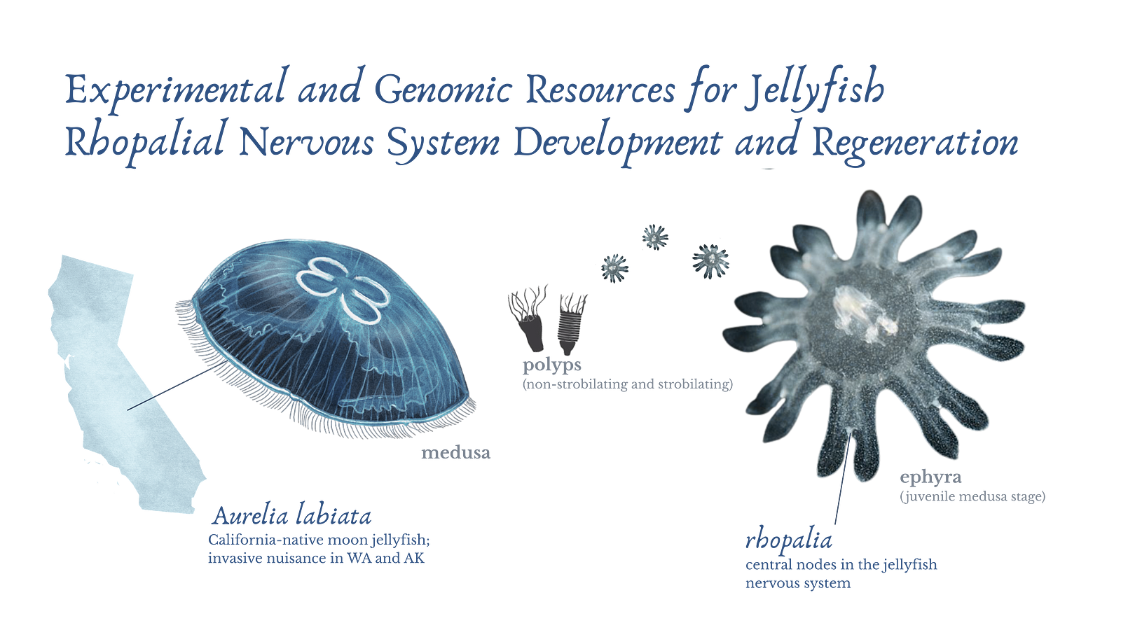 📌 As a current postdoctoral researcher at University of California, Santa Cruz in the CnidoLab (Macias-Muñoz Lab), I investigate the cellular and molecular mechanisms that enable cnidarians to regenerate tissues and sustain stable symbiotic partnerships, focusing on the moon jellyfish, Aurelia labiata and upside-down jellyfish, Cassiopea . By dissecting how these animals coordinate wound healing and regulate symbiosis, I aim to identify conserved and unique pathways that could be leveraged to enhance resilience in other systems, including reef-building corals and human tissues.